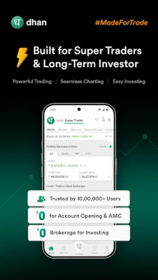Dhan ایک قابل اعتماد تجارتی ایپ ہے جو تاجروں اور سرمایہ کاروں کے لیے تیار کی گئی ہے۔ یہ تیز رفتار، جدید ٹولز، پختہ بھروسہ مندی، اور شاندار کسٹمر سپورٹ کے ساتھ تجارت کو آسان بناتی ہے۔ 10 لاکھ سے زائد صارفین کا بھروسہ۔