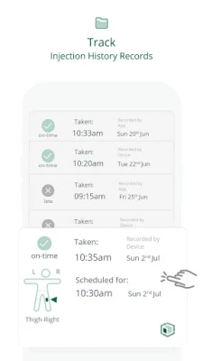 یہ جامع نظام آپ کی صحت کے سفر کو آسان بنانے کے لیے متعدد اہم خصوصیات پیش کرتا ہے۔ اس میں HealthBeacon سمارٹ شارپس بن میں طبی فضلے کا محفوظ اور احتیاطی ذخیرہ، آپ کی ضروریات کے مطابق ذاتی اور باہمی تعامل پر مبنی یاد دہانیاں، آپ کے مستقبل کے انجیکشن کے شیڈول کو ٹریک کرنے کی سہولت، انجیکشن کی جگہوں کو گھمانے کا انتظام، اور آپ کے انجیکشن کی تاریخ کا مکمل لاگ شامل ہے جو آسان حوالہ اور شیئرنگ کے لیے موجود ہے۔ آپ کو اپنا ذاتی "بر وقت اسکور" بھی ملے گا جو آپ کو شیڈول پر رہنے میں مدد کرے گا، اور اندرونی شارپس بن کو تبدیل کرنے کا وقت ہونے پر خودکار الرٹس موصول ہوں گے۔ اس کے علاوہ، ہماری دوستانہ کیئر ٹیم پورے پروگرام کے دوران ہر مرحلے پر آپ کی مدد کے لیے دستیاب ہے۔