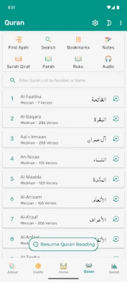 روحانی تسکین کے لیے، 30 سے زائد مشہور قاریوں کی دلکش تلاوتیں دستیاب ہیں، جن میں مشاری راشد العفاسی، عبدالرحمن السدیس اور عبدالباسط جیسے معروف نام شامل ہیں۔ یہ تمام تلاوتیں آف لائن سننے کے لیے قابلِ حصول ہیں۔ قرآن کی تفاسیر کو آڈیو کی شکل میں، استاد نعمان علی خان اور مفتی محمد سعید خان جیسے علماء کے بیانات کے ساتھ بھی سنا جا سکتا ہے۔ اس کے علاوہ، ایپ کا صارف دوست اور خوبصورت انٹرفیس، تیز رفتار اور ذہین تلاش کا انجن، متعدد رنگین تھیمز، پانچ بہترین عربی اور اردو فونٹس، اور لا محدود بک مارکس جیسی خصوصیات آپ کے تجربے کو مزید بہتر بناتی ہیں۔ آپ اپنی قرآنی نوٹس محفوظ کر سکتے ہیں، کسی بھی آیت یا حدیث کو آسانی سے نقل یا شیئر کر سکتے ہیں، اور اپنی مرضی کے مطابق لے آؤٹ کا انتخاب کر سکتے ہیں۔ یہ تمام خصوصیات، تاریک اور شب کے موڈز کے ساتھ، اسلامی علم کے حصول کو آسان اور خوشگوار بناتی ہیں۔