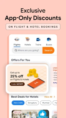ixigo: فلائٹ اور ہوٹل بکنگ ہندوستان اور بین الاقوامی پروازوں کے لیے بہترین AI ایپ ہے۔ 2 کروڑ سے زائد صارفین اس پر بھروسہ کرتے ہیں۔ پروازوں کا موازنہ کریں، سستے ٹکٹ اور ہوٹل بک کریں، 25% تک چھوٹ پائیں، اور فلائٹ اسٹیٹس جانیں۔