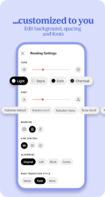 Kobo Books App آپ کے ہر پڑھنے اور سننے کے لمحے کو پرلطف اور آسان بنانے کے لیے بنائی گئی ہے۔ آپ اپنی سہولت کے مطابق ٹیکسٹ کا سائز اور انداز ایڈجسٹ کر سکتے ہیں، یا آنکھوں کے آرام کے لیے نائٹ موڈ کو فعال کر سکتے ہیں۔ پڑھنے کے لیے پورٹریٹ یا لینڈ سکیپ موڈ کا انتخاب کریں۔ ہمارا بدیہی آڈیو بک پلیئر آپ کو آسانی سے نیویگیٹ، موقوف اور اپنی پیشرفت کو ٹریک کرنے کی سہولت دیتا ہے، نیز سونے کے وقت سننے کے لیے سلیپ ٹائمر بھی سیٹ کر سکتے ہیں۔ Kobo Books App، Kobo Web Reader اور آپ کے Kobo eReader کے درمیان آپ کی پڑھنے کی پیشرفت خود بخود ہم آہنگ ہوتی ہے، جس سے آپ کبھی بھی اپنی جگہ نہیں کھوتے اور تمام آلات پر بلا تعطل پڑھ سکتے ہیں۔ یہ ایپ انگریزی، فرانسیسی، ہسپانوی، اطالوی، جرمن، ڈچ، پرتگالی، برازیلی پرتگالی اور جاپانی سمیت کئی زبانوں کی حمایت کرتی ہے۔